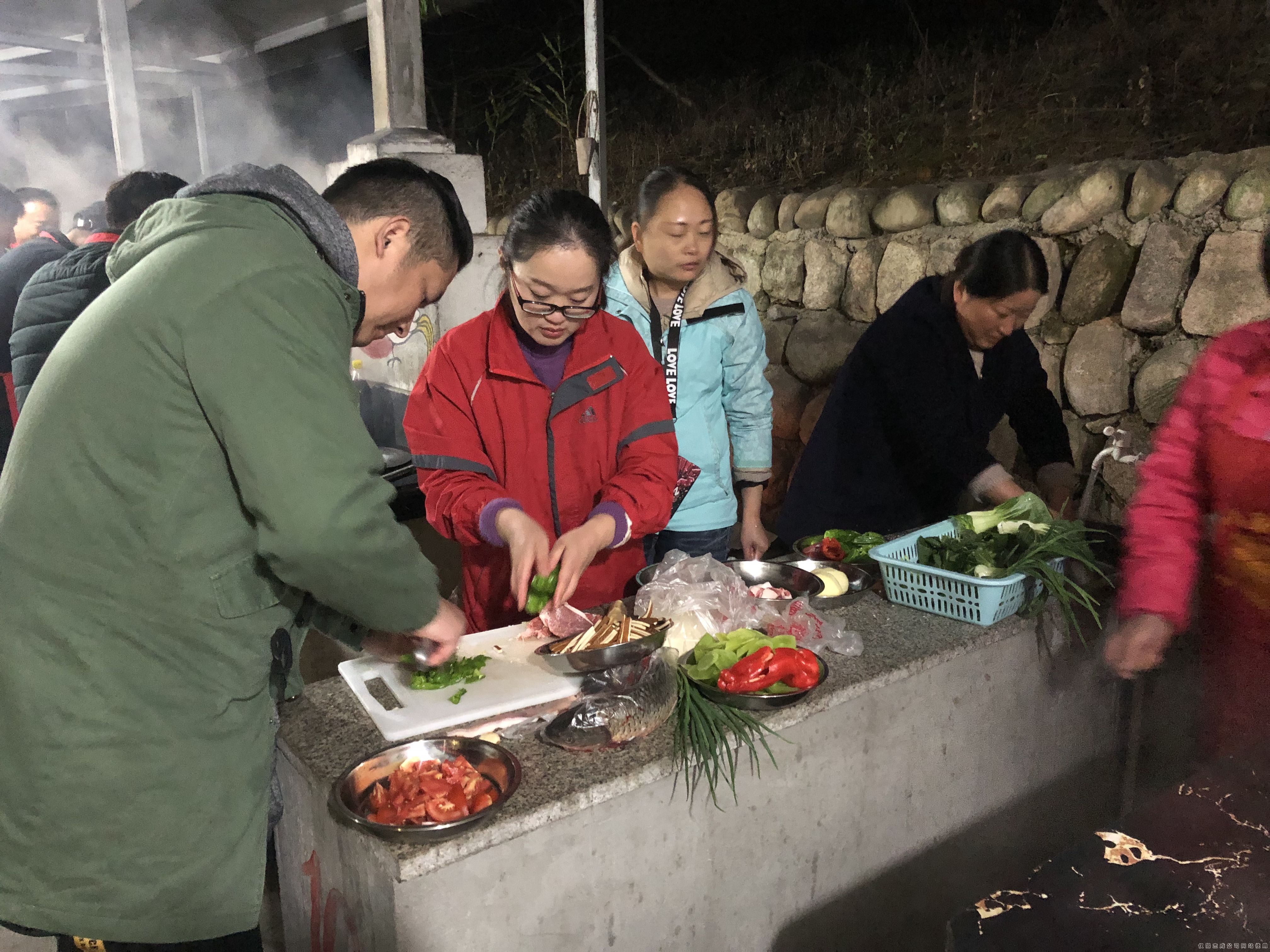 半天的熟悉與磨合,大家打破了層級、年齡、性別上的冰層,增進(jìn)了彼此的了解。傍晚的大鍋灶環(huán)節(jié)更是團(tuán)隊(duì)協(xié)作的比拼,各隊(duì)組員分工明確、默契合作,洗切燒拌烹炒蒸炸…