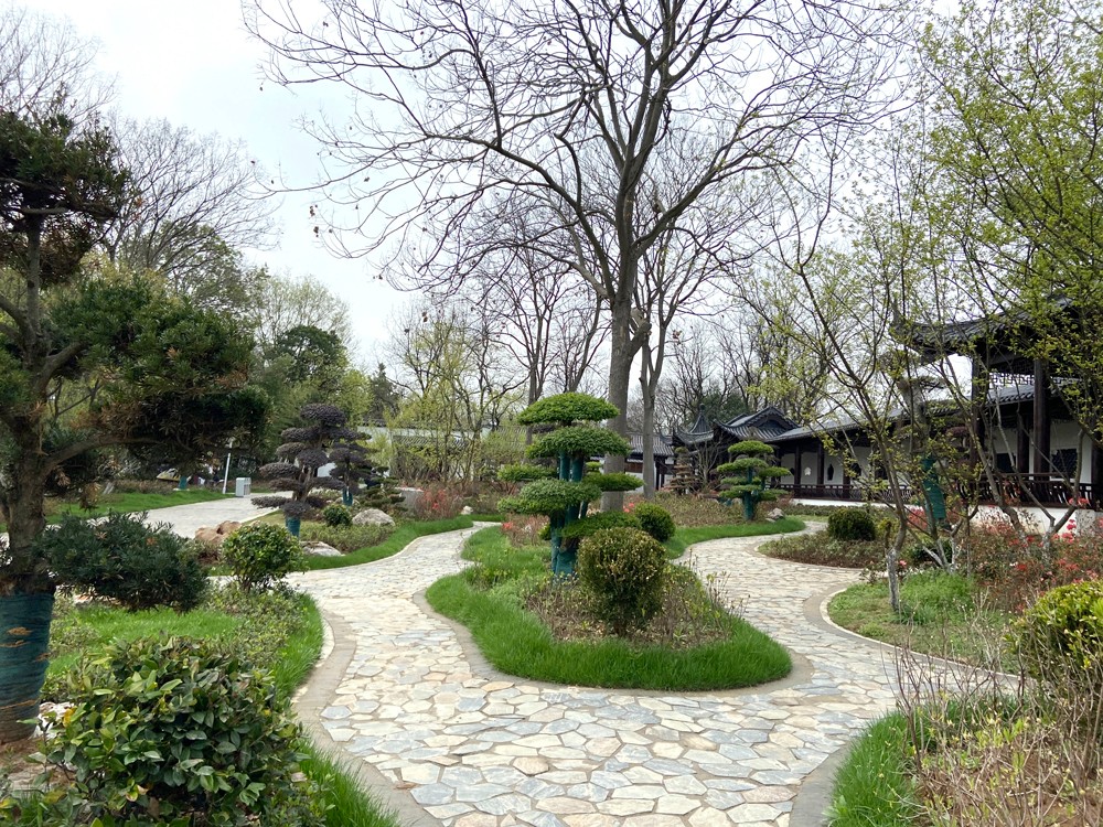 效果:迎合現(xiàn)有朗庭,以造型松等植物營造出雅致中式庭院景觀。