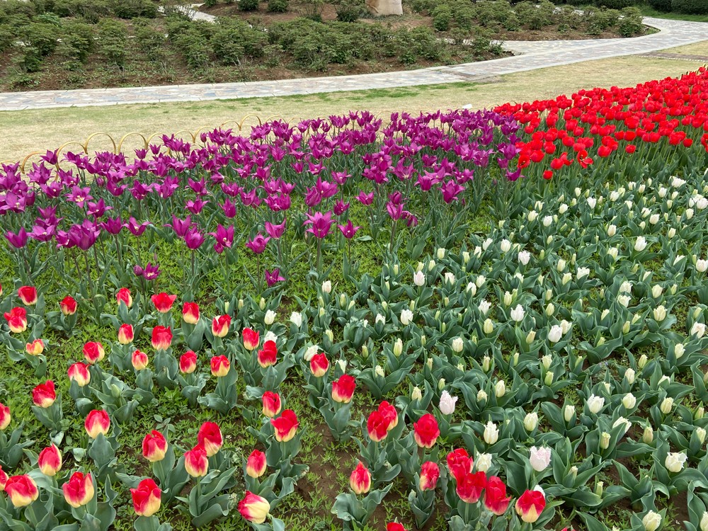 效果:用大面積顏色來營造花海的氛圍感,利用不用花色花形狀,組合出成片的花帶,搭配出層次感。